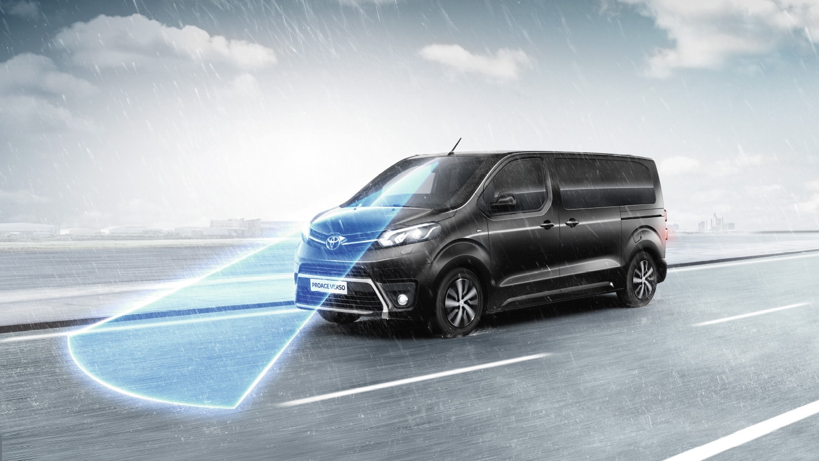 Vista frontal del Toyota Proace Verso en una carretera